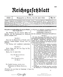 - Deutsch-russischer Vertrag von Rapallo (Der Vertragstext auf documentArchiv.de) (Reichs-Gesetzblatt 1922 II, S. 677–679.)