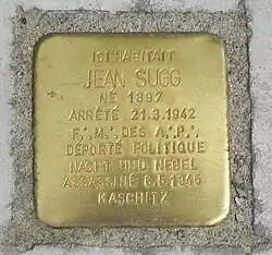 Seit 2012 erinnert ein Stolperstein vor der Vertretung an Jean Sugg und sein Leben.