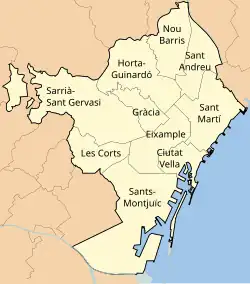 Barcelona ist auf kommunaler Ebene in Verwaltungsbezirke oder Distrikte (auf Katalanisch "districte") unterteilt. Diese stellen die erste Ebene der Einteilung der Stadt in Verwaltungseinheiten dar. Derzeit ist die Stadt in zehn Bezirke unterteilt. Diese Einteilung erfolgte 1984 aufgrund historischer und funktionaler Kriterien.