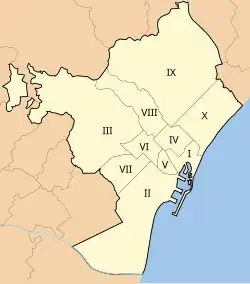 - Bezirk I – (heutiges Barri Gòtic + La Ribera + Barceloneta) (zwanzig Stadtteile)
