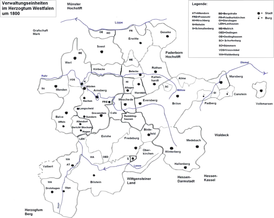 - Manfred Schöne: Das Herzogtum Westfalen unter hessen-darmstädtischer Herrschaft 1802 – 1816, Olpe 1966.