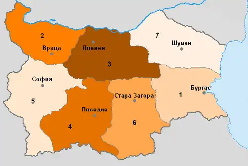 Bulgarien wurde mit dem Dekret Nr. 1 des Jahres 1999 des Präsidenten in folgende Oblaste untergegliedert:[1]