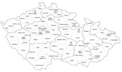 - ↑ Die sieben Kreise („alte“ Kraje) sind: Středočeský kraj („Mittelböhmischer Kreis“) mit Sitz in Prag, Jihočeský kraj („Südböhmischer Kreis“) mit Sitz in České Budějovice, Západočeský kraj („Westböhmischer Kreis“) mit Sitz in Pilsen, Severočeský kraj („Nordböhmischer Kreis“) mit Sitz in Ústí nad Labem, Východočeský kraj („Ostböhmischer Kreis“) mit Sitz in Hradec Králové, Jihomoravský kraj („Südmährischer Kreis“) mit Sitz in Brünn und Severomoravský kraj („Nordmährischer Kreis“) mit Sitz in Ostrava.