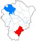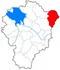 - ↑ a b c Stadt gehört nicht zum Rajon, sondern bildet eigenständigen Stadtkreis; Einwohnerzahl der Stadt nicht bei der Berechnung der Bevölkerungsdichte berücksichtigt