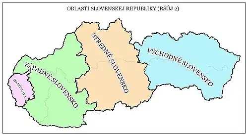 - Westslowakei (slowakisch: Západné Slovensko) (SK02) – Trnavský kraj, Trenčiansky kraj und Nitriansky kraj,