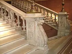 - ↑ Alois Kieslinger: Die Steine der Wiener Ringstrasse. 1972. S. 94–96. In den großen Ringstraßenbauten … wenige lange monolithe Stufen in den Prunktreppen, ein besonderes Beispiel. Durch die Bahnverbindung nach Triest (1857) kam eine Fülle von Karstmarmoren verhältnismäßig billig nach Wien. Bezeichnenderweise sind in den älteren Ringstraßenbauten, nach 1860, die Stufen immer noch aus Kaiserstein, so z. B. in den Häusern Schubertring 1–11.