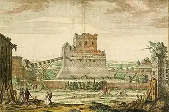 Die Ruine der Veste Erlangen von Norden, um 1730 | ||