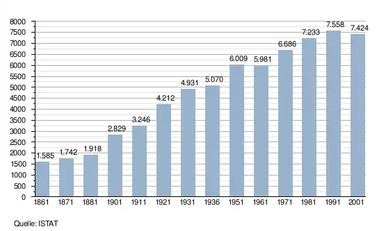 - ↑ Bilancio demografico e popolazione residente per sesso al 31 dicembre 2024. ISTAT. (Bevölkerungsstatistiken des Istituto Nazionale di Statistica, Stand 31. Dezember 2024).