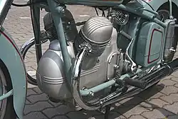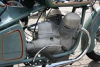 Der Bergmeister-Motor ist ein fahrtwindgekühlter Zweizylinder-Viertakt-Ottomotor, der mit 347 cm³ Hubraum 21 PS (15 kW) leistet. Er ist ein V-Motor mit 64° Zylinderbankwinkel, dessen Pleuel nebeneinander auf einem gemeinsamen Hubzapfen laufen; dadurch baut der Motor relativ kurz. Die Zylinder sind bei starker Schräglage in Kurven oder bei einem Sturz weniger gefährdet als die eines Boxermotors. Über der Kurbelwelle liegt die durch eine Kette angetriebene Nockenwelle, die über Rollenstößel, Stoßstangen und Kipphebel die Ventile steuert. Dank der verhältnismäßig hohen Lage der Nockenwelle sind die Stoßstangen kurz.