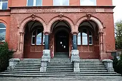 1898 zog die Schule in ihr bis heute aktuelles Domizil in der Hochstraße im Külpschen Garten. Das Gebäude wurde nach den Entwürfen des Architekten Eugen Beck (* 11. Januar 1866 in Randegg; † 1934) gebaut.[5] Am 15. November 1898 erfolgte die Einweihung der Schule. Neben der Namensgeberin, der Prinzessin Viktoria von Hessen, waren auch Prinz Wilhelm von Preußen und Großherzog Ernst Ludwig von Hessen an der Einweihung beteiligt.