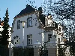 Die Villa mit neobarocken und neoklassizistischen Elementen ist annähernd quadratisch und wird von einem Mansard-Krüppelwalmdach abgeschlossen. Die Nordseite des Gebäudes zur Straße ist zweiachsig und wird von drei größeren und einem kleineren Fenster belichtet. Eines der Fenster ist als Segmentbogenfenster ausgelegt, die drei anderen hochrechteckig. Das rustizierte Sockelgeschoss wird in beiden Achsen durch ein querrechteckiges Fenster belichtet und durch ein umlaufendes Geschossgesims abgeschlossen. Das Eingangsportal liegt auf der Westseite, auf der sich auch eine polygonale Auslucht befindet. West- und Ostseite des Gebäudes werden von einem auskragenden Traufgesims abgeschlossen und besitzen jeweils zwei große geschmückte Gauben.