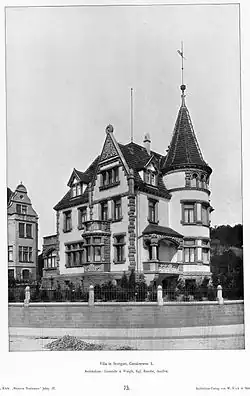 - Wilhelm Kick (Hrsg.): Moderne Neubauten, 4. Jahrgang, Stuttgarter Architektur-Verlag Kick, Stuttgart 1902, Tafel 73.