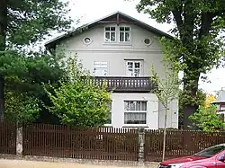 Die zweigeschossige, zusammen mit ihrer Einfriedung unter Denkmalschutz stehende[1] Villa steht giebelständig zur Straße. Sie steht auf einem Bruchsteinsockel und hat über einem Sparrengiebel ein flachgeneigtes, weit überstehendes Satteldach, das schiefergedeckt ist.