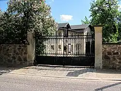 Die ehemalige Remise steht im östlichen (linken) Grundstücksteil. Nah dem Haus hat sie einen Querflügel mit einer Rundbogenöffnung. Auch das Nebengebäude steht auf einem Bruchsteinsockel und ist verputzt.