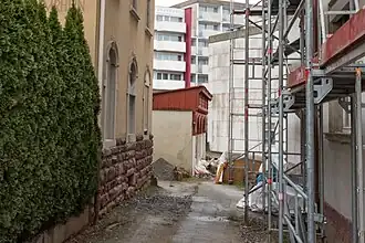 In den Jahren 1962 und 1972 wurden Vorder- und Rückgebäude um ein zweites Obergeschoss aufgestockt.