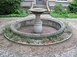 Der auf einem Natursteinsockel stehende Putzbau erhielt bei seinem Umbau in den 1920er Jahren zusätzliche horizontale Putzstrukturen. Das schlichte Eisentor mit horizontalen Streben steht zwischen zwei kräftigen Kunststeinblöcken, die restliche Einfriedung besteht aus Lanzettzaunfeldern zwischen Sandsteinsäulen. Im Garten vor dem Haus steht ein Brunnen aus der Bauzeit des Hauses.