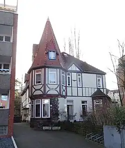 - ↑ a b c d Villa "Heimchen" des Herrn Hauptmann Milinowski in Herrenhausen bei Hannover, Alleestraße (erbaut 1890), Tafel 67 (2 Fotos, Grundrisse, Aufriß), fotomechanisch erstellte Reproduktion der Tafel Nummer 67 in Oswald Haenels Bildband Einfache Villen und Landhäuser ..., Dresden 1902, Tafel 67