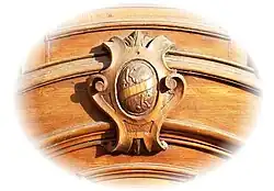 Auf beiden Flügeln der Eingangstüre befinden sich die Initialen „K/K“. Diese Initialen bedeuten „Kollmann“, da die Erbauerin Katharina Markbreiter mit Geburtsnamen Kollmann hieß und die Halbschwester von Bernhard Kollmann, dem ersten Pferde-Tramway-Betreiber von Graz, war.