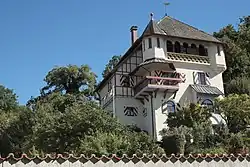 Die burgartige Villa mit Walmdach, Erkern, Balkonen und Loggia hoch über dem Wörthsee wurde von dem Münchner Ingenieur und Baumeister Max Kraus, Architekt des Müllerschen Volksbads, 1901 für sich selbst erbaut und bezogen.