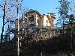 Auf einer Waldlichtung auf dem Grundstück steht eine vergoldete Lyra, die ein wenig an eine Theaterdekoration erinnert. Die Lyra wurde 1941 an derselben Stelle neu errichtet.[4]