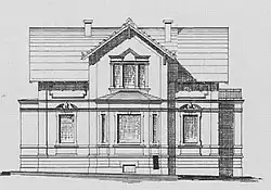 Das verputzte Gebäude trägt inzwischen vereinfachte Gliederungen.