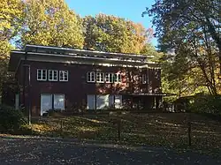 Der Baukörper ist kubisch. Die geringe Dachneigung von 5° lässt das Dach als Flachdach erscheinen. Die Fassaden bestehen aus unverputztem rötlichen Ziegelmauerwerk. Sie bilden einen Kontrast zu den weiß gestrichenen Holzsprossenfenstern. Das Innere ist geprägt von einer Flexibilität der räumlichen Aufteilung. Große Fenster erlauben eine Verbindung mit der umgebenden Landschaft. Entsprechend hell wirken die Innenräume.