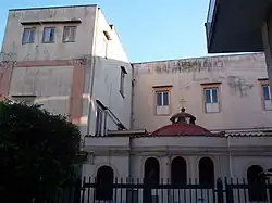 Das Gebäude hat einen U-Förmigen Grundriss (einen Mitteltrakt, flankiert von zwei Seitenflügeln), in dessen Zentrum eine kleine Kapelle mit einem Kreuz darauf liegt.