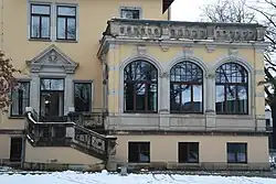 Allerdings wurden in der Weltwirtschaftskrise und anschließenden Inflationszeit zum Überleben fast alle Kunstgegenstände verkauft oder anderweitig in Zahlung gegeben. Der aufwendige Lebenswandel konnte von der Familie nicht gehalten werden. Die nun leere Prachtvilla wurde im Jahr 1937 von der Stadt Dresden übernommen. Im Jahr 1945 richtete die Stadt, durch die verheerenden Bombenangriffe bedingt, eine Notverpflegungsstelle für Ausgebombte, Flüchtlinge und Heimatvertriebene ein. Später wurden die Räume für eine Zentrale der Blasewitzer Einwohner zur Ausgabe von Lebensmittelmarken und rationierten Lebensmitteln genutzt. Bereits im Juni 1945 wurde der Villa mit der Gründung einer Musikschule durch Musikpädagogen und Musiker eine künstlerische neue Bedeutung gegeben. Mit bescheidenen Mitteln und mit der Unterstützung der Sowjetischen Militäradministration entstand eine Akademie für Musik und Theater, im Herbst 1952 zur Hochschule für Musik erhoben.[3] In den 1990er Jahren nutzte das Sächsische Landesgymnasium „Carl Maria von Weber“ die Villa als Spezialschule für Musik. In den Jahren 2007 bis 2008 erfolgten umfangreiche Sanierungsmaßnahmen. Dabei übernahmen das Architektenbüro Jörg Baarß und Klaus Löschner in enger Zusammenarbeit mit dem Landesamt für Denkmalpflege Sachsen die Gesamtsanierungen einschließlich Akustik und Möblierung.[4] Die Gesamtkosten betrugen 3,7 Millionen Euro. Die Firma Schmiede Neuhammer aus Olbernhau restaurierte die historischen Oberlichtgitter, Treppengeländer, Zierelemente, Füllungen an der Sandsteintreppe und Zaunelemente.[5] Im parkähnlichen Garten wurden abseits zwei moderne Internatsgebäude errichtet.
