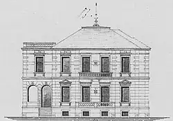 Der ehemals historistische Putzbau ist im Sinne der Reformarchitektur umgeformt, was sich auch im Inneren niedergeschlagen hat. Die Fenster werden von Sandstein eingefasst.