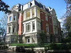 Das Haus wurde in Massivbauweise mit einer Klinker-Sandstein-Fassade gebaut. Das Rot der Klinkerflächen kontrastiert mit dem schwarzen Schiefer des Mansarddachs, den grob behauenen Natursteinen des Sockelgeschosses und den sandsteinfarbenen Gewänden, Gesimsen, Erker-, Giebel- und Balkonverblendungen. Die Villa verbindet Stilelemente der französischen Neorenaissance mit denen des Jugendstils. Außergewöhnlich ist die Größe des restaurierten Haupttors. Die Innenausstattung des Treppenhauses, Entrées und der Repräsentationsräume ist in wertvollen Materialien und künstlerisch ausgeführt. So sind Stuckarbeiten und Dekormalerei, klarer als die Außengestaltung, der zeitlichen Entwicklung des Innenausbaus folgend, ausnahmslos dem Jugendstil verpflichtet.