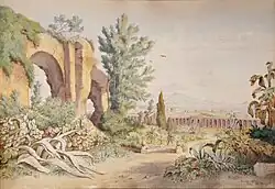 Die im Südosten der Stadt, noch innerhalb der Aurelianischen Mauer gelegene Villa umfasst Teile eines unter Nero gebauten Aquädukts, das eine Abzweigung der Aqua Claudia bildet. Das Areal diente dann bis Anfang des 19. Jahrhunderts landwirtschaftlichen Zwecken. Fürstin Sinaida Alexandrowna Wolkonskaja, Tochter eines russischen Diplomaten, erwarb das Land im Jahr 1830. Die Fürstin wuchs in Turin auf, wo ihr Vater Botschafter war. Sie lebte von 1820 bis 1822 in Rom und kehrte dann 1829 mit ihrer Familie in die Ewige Stadt zurück. Wolkonskaja beauftragte den Architekten Giovanni Azzurri mit dem Bau einer Villa, ließ den dazugehörigen Park anlegen und auch den dort verlaufenden Teil des Aquädukts restaurieren. Ihre Villa entwickelte sich bald zu einem renommierten literarischen Salon, der unter anderem von Karl Brullow, Alexander Iwanow, Bertel Thorvaldsen, Gaetano Donizetti, Stendhal, Sir Walter Scott und Nikolai Gogol besucht wurde. Fürstin Wolkonskaja nutzte die Villa vorwiegend als Landsitz, da sie in der Innenstadt noch über weitere Wohnungen verfügte. Nach Sinaida Wolkonskajas Tod im Jahr 1862 erbte ihr Sohn Alexander die Villa, dann ging sie an Marchesa Nadia Campanari über, eine Enkelin Alexander Wolkonskys. Die Familie Campanari baute südlich der ursprünglichen Villa ein neues Gebäude, das im weiteren Verlauf vermietet wurde. Ende des 19. Jahrhunderts verlor das Anwesen wegen der städtebaulichen Erweiterung Roms viel von seinem landschaftlichen Reiz. 1922 verkauften die Campanaris die Villa Wolkonsky an die deutsche Regierung, die dort ihre Botschaft beim Königreich Italien und auch die Residenz des Botschafters einrichtete. Das Hauptgebäude und auch der Altbau wurden ausgebaut, am Haupteingang entstand ein weiteres Gebäude. Mit der deutschen Besetzung Italiens im September 1943 (Fall Achse) stellte die Botschaft ihren diplomatischen Dienst ein. Nach der Befreiung Roms am 4. Juni 1944 beschlagnahmte die italienische Regierung die Botschaft, die während der Besetzung mit ihrer Außenstelle in der Via Tasso unter anderem als Gefängnis genutzt worden war. Vorübergehend wurde das Anwesen der diplomatischen Vertretung der Schweiz und dem Italienischen Roten Kreuz überlassen.