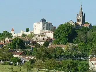 Villebois-Lavalette – Ortsbild mit Kirche und Burg | ||