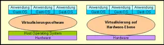 Virtualisierung bezeichnet in der Informatik die Nachbildung eines Hard- oder Software-Objekts durch ein ähnliches Objekt vom selben Typ mit Hilfe einer Abstraktionsschicht. Dadurch lassen sich virtuelle (d. h. nicht-physische) Geräte oder Dienste wie emulierte Hardware, Betriebssysteme, Datenspeicher oder Netzwerkressourcen erzeugen. Dies erlaubt es etwa, Computer-Ressourcen (insbesondere im Server-Bereich) transparent zusammenzufassen oder aufzuteilen, oder ein Betriebssystem innerhalb eines anderen auszuführen. Dadurch können u. a. mehrere Betriebssysteme auf einem physischen Server oder „Host“ ausgeführt werden.