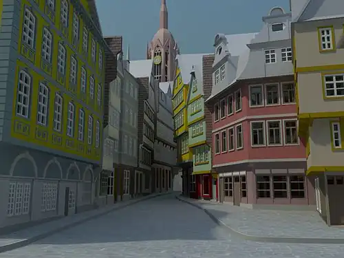 Aufwändige Quellenstudien im Institut für Stadtgeschichte im Mai 2009 erbrachten zudem das Ergebnis, dass sich auch weite Teile der nördlichen Altstadt jenseits der Schnurgasse bis fast hinauf zu den Grabenstraßen[2] virtuell rekonstruieren lassen. Die grundsätzlichen Modellbauarbeiten, die sich auf den vorgenannten Bereich konzentrierten werden, waren im Februar 2011 abgeschlossen; gleichwohl plant Ott, das Modell mittelfristig um die noch fehlenden Bereiche der Hauptwache und der Zeil zu ergänzen.
