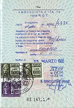 - An der Grenze erteiltes Visum: Einige Staaten erteilen Visa regelmäßig an der Grenze und versehen diese Visa dann ggfs. zusätzlich mit Einreisekontrollstempeln. Dies ist etwa in der Türkei im Hinblick auf einige dort visumpflichtige Staaten üblich.[39] Im Schengen-Raum können ebenfalls Visa an der Grenze erteilt werden, allerdings nur als Ausnahmevisum, wenn ein unvorhersehbarer und zwingender Einreisegrund geltend gemacht wird und ein besonderes Interesse (etwa politischer oder humanitärer Natur) glaubhaft gemacht wird.[40]