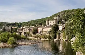 Das Dorf Vogüé liegt am Ufer der Ardèche am Fuße einer Steilwand aus Kalkstein rund zehn Kilometer südlich von Aubenas.
