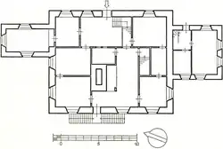 Der östliche Anbau weist nur einen Raum auf und ist vom Haupthaus zugänglich. Der westliche Anbau verfügt neben einem großen Zimmer noch über eine kleine Diele mit Treppenaufgang.