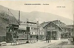 Der Endpunkt für die Personenzüge lag zunächst seitlich der Rue du 4 Septembre am Hausbahnsteig des Fernbahnhofs der P.L.M. Die schlichte Gleisanlage bestand aus dem Bahnsteiggleis, einem Umfahrgleis und einem Ausziehgleis.[4] Die Güterzüge endeten weiter nördlich am Umladebahnhof Grenoble Abattoirs bzw. Grenoble Polygone, der auch von den Schmalspurbahnen T.G.C. und Société Grenobloise de Tramways Electriques (S.G.T.E.) bzw. den Vorgängern letzterer genutzt wurde[5] und über Behandlungsanlagen für die Dampflokomotiven verfügte. Um 1900 entstand auf der Place de la Gare neben dem Gütergleis eine zweigleisige Station an einem gemeinsam mit dem T.G.C. genutzten Mittelbahnsteig, wobei dessen Züge an der gegenüberliegenden Bahnsteigkante hielten. Über ein Gleisdreieck existierte einige Jahre lang eine direkte Verbindung zwischen der alten und der neuen Endstation.