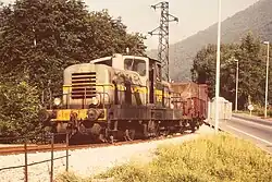 - Im Dezember 1955 konnte mit der T 10 eine vierachsige normalspurige Diesellok von der Staatsbahn SNCF erworben werden. Sie hatte ebenfalls einen Mittelführerstand, die Achsfolge BB und war bei der Compagnie de chemins de fer départementaux (C.F.D.) in Montmirail gebaut worden. Später kam mit der T 15 eine Lokomotive gleicher Bauart hinzu.
