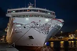Am 22. April 2017 rammte die Fähre kurz nach dem Ablegen in Las Palmas (mit Fahrtziel Teneriffa) frontal die Hafenmole von Las Palmas de Gran Canaria. Ursache war nach Meldung der Reederei ein zweiminütiger Stromausfall mit nachfolgendem Ausfall der Hauptmaschinen; der Versuch, das Schiff mit dem Steuerbordanker zu stoppen, schlug fehl. Bei der Kollision wurden 13 der 140 Passagiere an Bord leicht verletzt. Aus einer beschädigten Treibstoffleitung in der Hafenmole liefen etwa 60.000 Liter Diesel aus. Der entstehende Ölteppich war mehrere Kilometer lang und wurde von Einheiten des Salvamento Maritimo, darunter der mit Ölbekämpfungssystemen ausgerüstete Notschlepper Miguel de Cervantes, eingedämmt und aufgelöst. Schätzungen zufolge beträgt der Schaden an der Hafenmole etwa 2 Millionen Euro.[3][4][5][6][7]