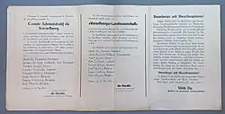 - ↑ Das Original befindet sich im Vorarlberger Landesarchiv, Plakatsammlung Nr. 440 (Original 48 × 100 cm). Abgedruckt in der Broschüre „Gott segne unsere Arbeit und unser Land!“ – Festschrift des Landes Vorarlberg anlässlich der Enthüllung einer Gedenktafel am Gesellenhaus in Feldkirch zur Erinnerung an die Wiedergründung des Landes Vorarlberg am 24. Mai 1945. Feldkirch, 24. Mai 2005.