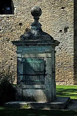 Das ehemals befestigte Dorf weist noch hoch aufragende Ruinen seiner Wehrmauern mit Torgebäuden auf.