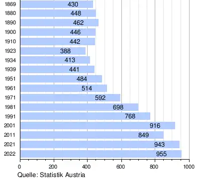 - ↑ Statistik Austria – Bevölkerung zu Jahresbeginn nach administrativen Gebietseinheiten (Bundesländer, NUTS-Regionen, Bezirke, Gemeinden) seit 2002 (ODS)