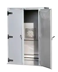- Üblicherweise sind diese Wärmekammern heute mit einem elektronischen Temperaturregler, einer motorischen Luftumwälzung, einem Temperaturbegrenzer und einer elektrischen Heizung aus Rohrheizkörpern ausgestattet. Der elektronische Temperaturregler ersetzt heute den Thermostaten, der meist sehr teuer und ungenau ist. Die motorische Luftumwälzung stellt sicher, dass im ganzen Nutzraum die gleiche Temperatur erreicht wird und somit die Wärmebehandlung im ganzen Nutzraum sichergestellt ist. Der Temperaturbegrenzer überwacht, zusätzlich zum Regler, die Temperatur in der Kammer. Bei einer Störung des Reglers oder der Steuerung schaltet der Temperaturbegrenzer die Heizung vollständig ab, sodass keine Gefahr für das Produkt, die Wärmekammer und die Umgebung besteht.