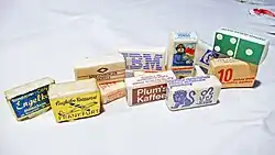 Würfelzucker in ziegelähnlichen Doppelverpackungen aus Papier waren im 20. Jahrhundert bis in die 1990er Jahre weit verbreitet und wurden in Cafés, Restaurants, Hotels usw. zum Kaffee gereicht. Solche Packungen waren bedruckt mit Werbebotschaften, Angaben zum Gastronomiebetrieb oder zur Kaffeesorte oder sie zeigten neutrale Muster oder auch – weniger häufig – politische Statements. Serienmotive (Sternzeichen, Automarken, Tierarten etc.) führten zu einem Sammlertum für verpackte Zuckerstücke.[8] Inzwischen ist diese Art der Darreichung in der Gastronomie seltener geworden, und es haben sich Tütchen mit losem Zucker mehr und mehr durchgesetzt. Die 1923 von dem Lebensmittelgroßhändler Karl Hellmann gegründete Hellma GmbH für Portionszucker in Nürnberg ist der letzte in Deutschland verbliebene Großproduzent für Würfelzucker-Zweierpäckchen im Gastronomiebetrieb.[9]