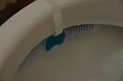 Ein handelsüblicher WC-Reiniger für Endverbraucher hat einen pH-Wert bei 1[5] und ist ätzend. Toilettenreiniger ist eines der chemisch aggressivsten Produkte, die sich in vielen Haushalten befinden, und daher häufige Ursache von Haushaltsunfällen. Opfer sind oft kleine Kinder, die WC-Reiniger trinken wollen. Nach Trunk wird durch eine starke Flüssigkeitszufuhr behandelt.[6] Gefährlich ist auch Kontakt mit chlorhaltigen Reinigern, da bei der Kombination lebensgefährliches Chlorgas entsteht.[7] Dies kann zu einem toxischen Lungenödem führen.[8] Ebenso kann der Reiniger die Umgebung der Toilette wie Kunststoffteile (Toilettensitz), Armaturen, kalkgebundene Steine, emaillierte Flächen oder die Zementfugen zwischen Fliesen angreifen.[9]