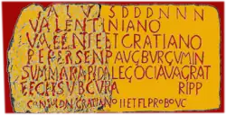 consul(ibus) d(omino) n(ostro) Gratian[o II et Probo v(iro) c(larissimo)][2]