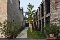 Ein ergänzender Neubau schuf weitere Räume für Ateliers und Werkstätten.[7]