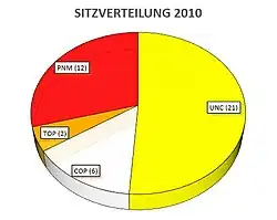 Als Ergebnis der General Election vom 24. Mai 2010 wurde die Regierung von der People’s Partnership gebildet, einer Koalition der Parteien United National Congress, Congress of the People, Tobago Organisation of the People und National Joint Action Committee.[1]