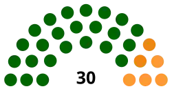 | Partei | Kürzel | Stimmen | in % | Sitze | |
